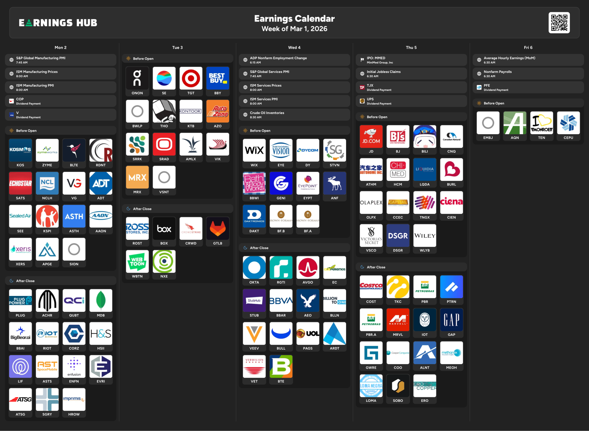 Earnings (your “catalyst calendar”)