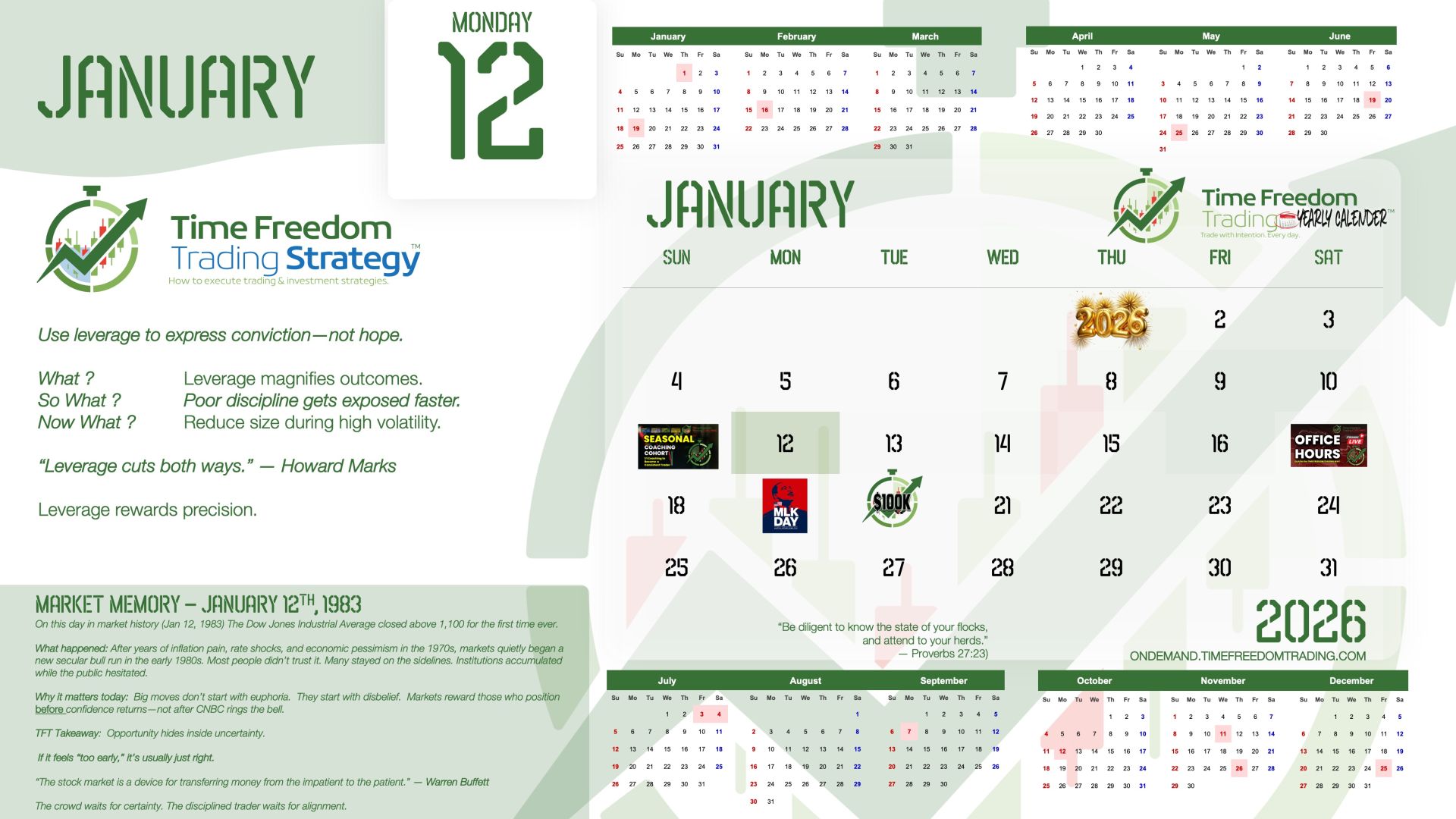 Join Time Freedom Traders learning "live and in real-time" the seasonality of the stock market. This comprehensive Trader Coaching Cohort will teach you 1:1, in live Cohort sessions, and open office hours, specifically how to trade the seasons of the stock market and learn from live Market Moments for profitable trading strategies.